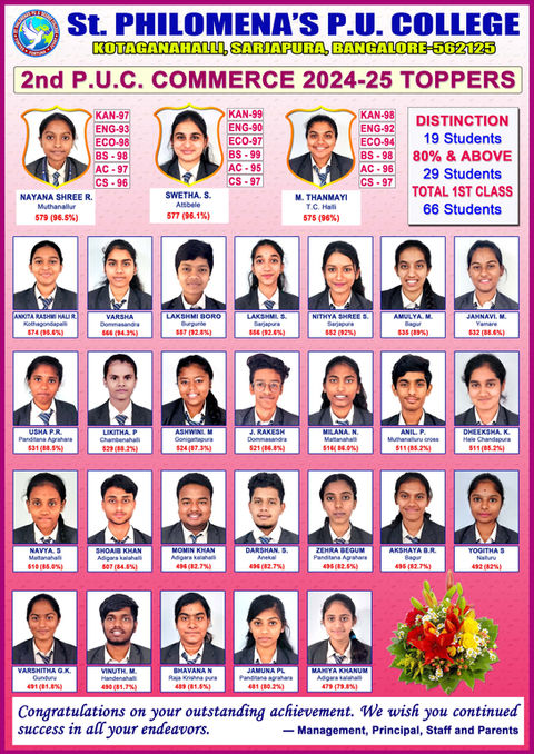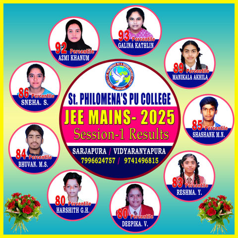 St. Philomena’s PU & Degree College was established in 2016, with an aim to provide quality education. Being true to our aim we have been providing integrated courses to help students have bright prospects in respective courses. The college is set amidst the pristine green surroundings far from the pollution of the city. The evergreen flora and the eco-friendly nature, inspires them to have a clear thought process. In today’s globalized, technology-driven and competitive world, education is undergoing a paradigm shift. Our objective is to empower students in all aspects of their lives, including academics, interpersonal skills, and morals. Along with the overall growth, we place a significant focus on our students' protection and safety. The campus buildings are always being monitored by CCTV, and there is diligent and well-trained security present. The college boasts top-notch amenities and free Wi-Fi throughout the entire campus. The successes in the JEE - 2022, CA foundation course, and K-CET 2022 make our diligent team proud.